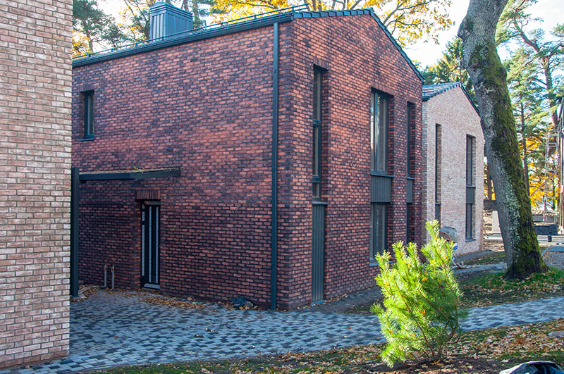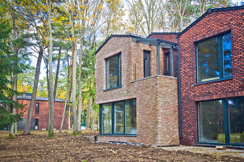 Foundations - driving piles. External walls - silicate blocks, insulated with polystyrene foam. External finish - clinker facades covered with tiles (Wienerberger, Germany). Pitched roof - clay tile (Wienerberger, Germany). Windows - customize maritime climate, wood, aluminum clad. Dormer windows - Velux (Denmark). Exterior doors - aluminum. The doors to the apartments - armored. Gas boilers - Junkers (Germany). Heating - floor (conduits Uponor).