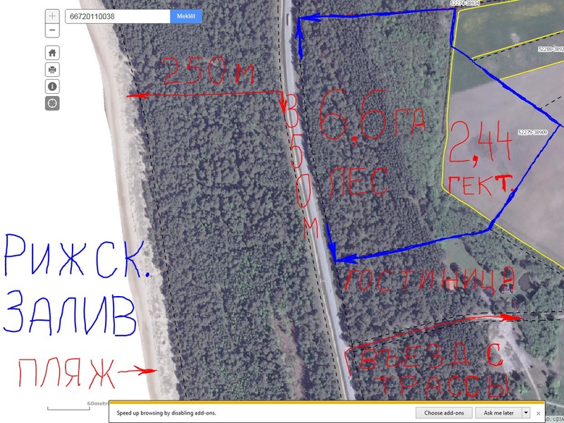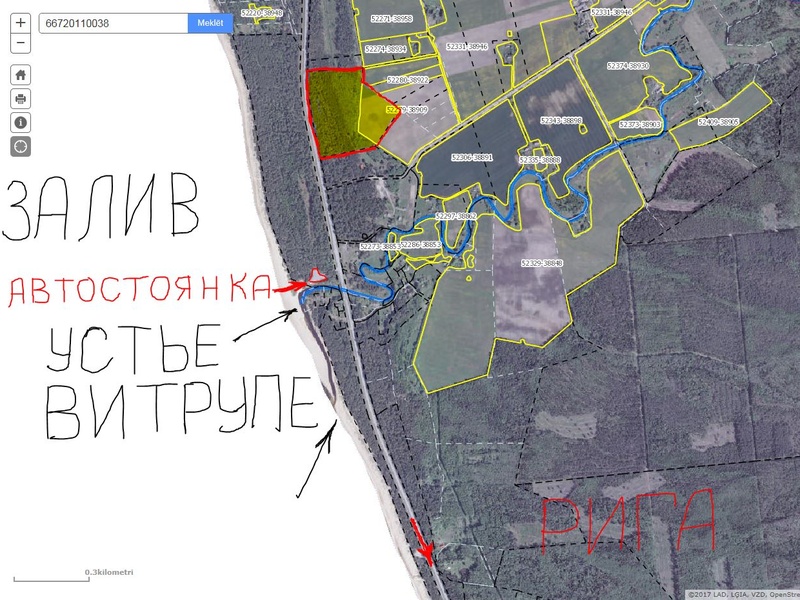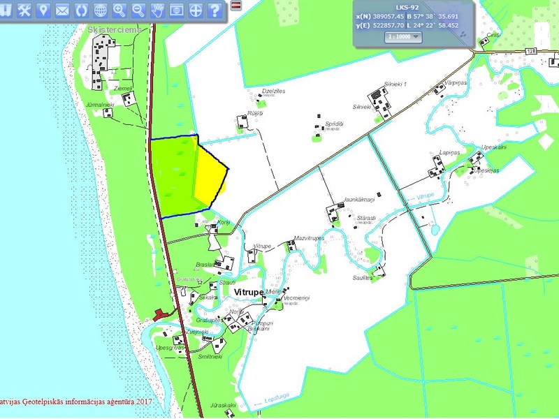 Предлагаю участок 95700кв.м.  в 250м от песчаного пляжа Рижского залива на территории ландшафтного биосферного парка Видземе.До порта Салацгривы 12км.90 км от Риги.Доступ к морю свободный через муницыпальный лес.В р-не устья реки и поселка Витрупе на протяжении 350м граничит с международной магистралью Е-67 ВИА-Балтика.Это единственный отрезок этой трассы во всей Европе,где дорога вплотную приближается к береговой линии и идет вдоль нее 2км.Через асфальтовую дорогу автостоянка с выходом на пляж.Данное место соответствует Европейскому стандарту чистоты воды и песка Синий Флаг с высокой оценкой.Участок Граничит с гостиничным комплексом.Въезд на участок с главной магистрали.Состоит из 66000кв.м.соснового лесопарка-рекреационной зоны-.возрастом до 175лет ,рассположенного на дюнном ландшафте(высотой дюн от 2 до 7м),по которому проходит 2000кв.м.грунтовой дороги через горку в сторону поля,24400кв.м.ровного сельхозполя,на котором разрешено строить дом на фундаменте либо рядный дом на 2 семьи с хозпостройками и 3300кв.м.канала-притока реки Витрупе,который отделяет лес от поля.Разрешено деление всего участка на 3части,на каждой из которых можно строиться.Находится в прибрежной защитной  полосе,где запрещена промышленная деятельность и по плану территориального развития разрешена постройка туристических и рекреационных объектов,поощряется развитие сельского туризма и строительство кемпингов,баз отдыха,мотелей,экопоселков,гостевых домов.Годовой налог 30 евро.Разрешена очередная санитарная вырубка всего леса и 30% его части от дюны до канала под лужайки.Мимо дальнего прямого угла поля проходит эл.линия 20квольт.Владелец-частное лицо.
