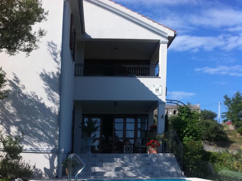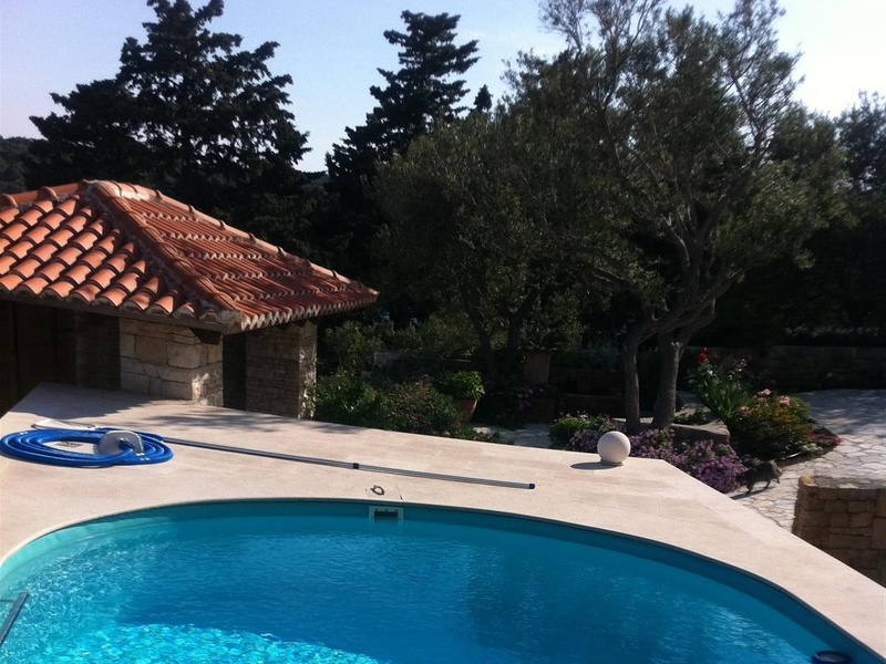 Luxury house, comfortable villa first-class design, built with premium materials. Villa is located on the island Rab and has a beautiful view of the sea. The floor area is 320 square meters and has 3 floors. In the basement are two separate apartments, one with his own kitchen. There is also a utility room and fully automatic furnace and water heater. The ground floor (has a terrace 35 m2 with pool) and the first floor are two 100square meters flats. The house is fully equiepped with luxury furniture. The villa has also has afully equiepped summer kitchen and fireplace and includes a land size of 716 square meters with a beautiful garden around the house.