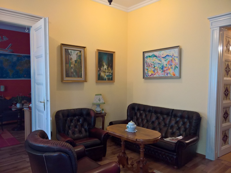 The flat is on the second floor of an apartment building. It`s quite big with 4 large bedrooms, a dining hall, kitchen, a balcony, and a bathroom. There`s also an additional storage room in the basement. The inner height is about 3,6 m (12 ft).