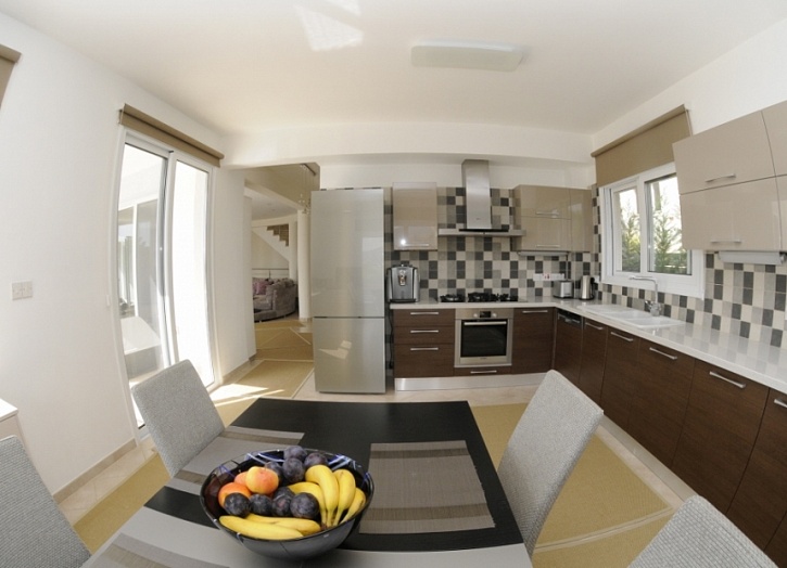 Рядом с бассейном имеется специально построенная летняя кухня для приготовления еды на свежем воздухе с духовкой и печью для барбекю. Чуть дальше - зеленый газон, идеально подходящий в качестве игровой площадки для детей. По всему периметру вилла окружена зелеными насаждениями, добавляющими уединенности этому прекрасному дому.