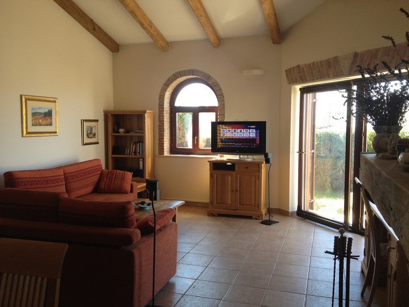 Charming house of 101 m2 is situated on a hill with a beautiful view of the sea and has a peaceful environment. It consists of two bedrooms, bathroom, toilet, kitchen, dining room and living room with fireplace from which to see the sea, and a garage. More can be seen from a bedroom on the one hand, and on the other to see the bell tower of the center. The beautiful garden has approximately 600 m2, decorated with Mediterranean plants and old ornamental olive trees. The nearby supermarket is only 5 minutes on foot, and the sea is only 7 km. The house is the best choice for those who like a quiet location and who are passionate views of the sea, and inspiring sunset.