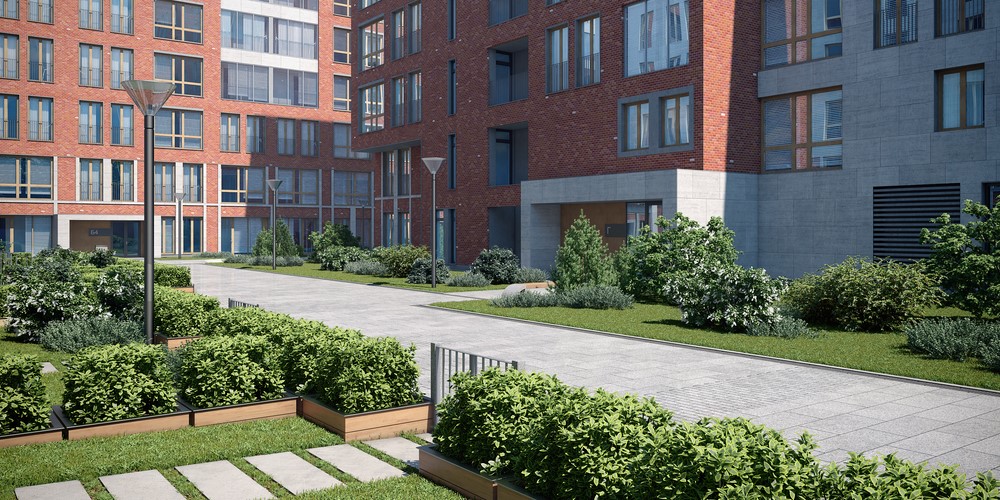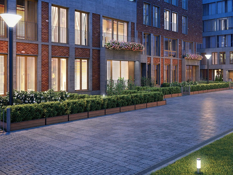 space (2 levels), designed for parking. Landscaped territory of the complex with recreation areas and