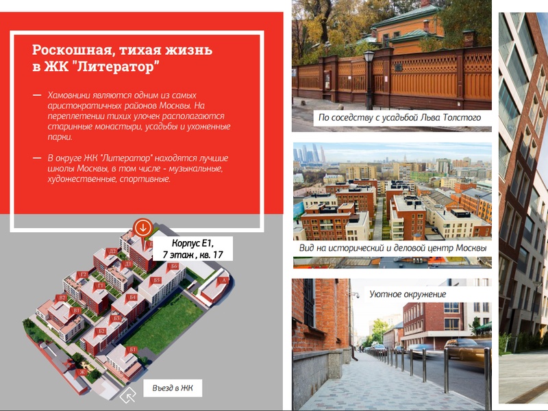The elite quarter `Literator` is located in the Khamovniki district of the Central administrative district of