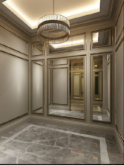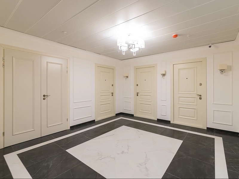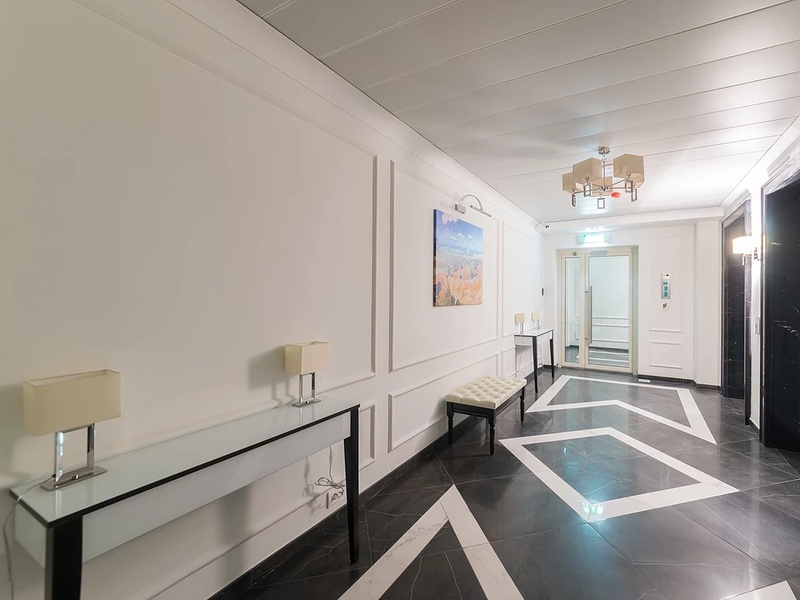 In the decoration of the walls a natural stone is used. Color - ivory. The basement floors are faced with dark green granite with geometric ornament. All this can already be purchased. Call! Apartments in the center of Moscow are waiting for their owner.
