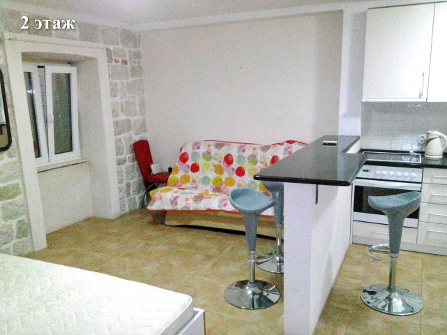 2 cozy studios of the same layout with the total area of 26 m2 each are for sale in an ancient stone house located less than 20 meter away from the sea in the village Orahovac, the Bay of Kotor. The price of the both studios is 70000 euro.