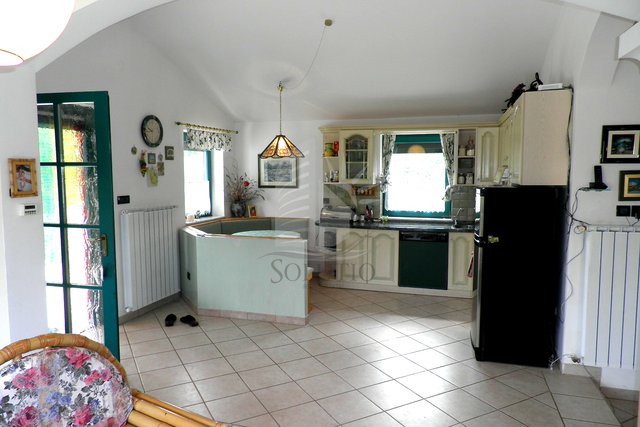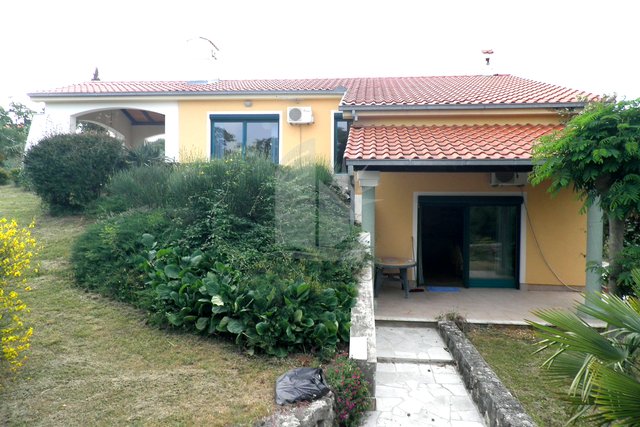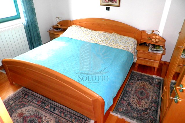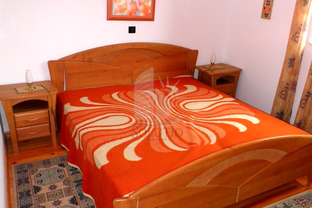 Malinska, detached house of 270 m2 on a plot of 1200 m2. The house has an apartment on the ground floor of 90 m2 which consists of living room, kitchen, hallway, bathroom, room, staircase, terrace and room that can be used by both apartments. On the first floor is an apartment of 70 m2 consisting of living room, kitchen, dining room, toilet, bathroom, room, terrace of 14 m2 and covered terrace of 24 m2 with fireplace. The first floor apartment has central heating on gas. The house is air-conditioned, equipped with aluminum joinery, telephone, internet. The house has a garage for 2 cars, a storage of 25 m2 and an outside toilet. The house has 3 parking spaces and a beautifully landscaped garden. The house was built in 1994 and has a C energy certificate. There is a possibility of buying an neighbor parcel next to the house.