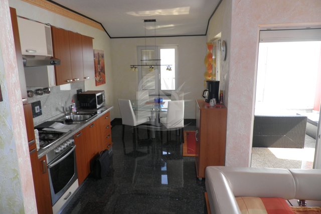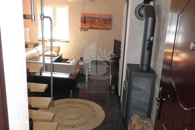 For sale is beautiful apartment in Cizici of 75 m2, in the attic. The apartment consists of living room, kitchen, balcony, 1 large bedroom, 2 small bedrooms, bathroom and attic of 11 m2. The apartment has a heating furnace and air conditioner. The apartment is located 1 m from the sea and 20 m from the center. It was built in 2015.