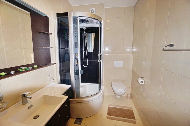 The bathroom is fully equipped with shower, underfloor heating, and a heated towel rail. The apartment is delivered according to European standards. This is the house of your dreams, so don’t miss it!