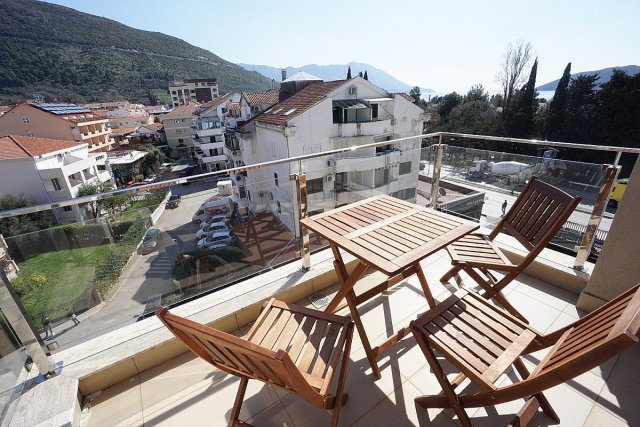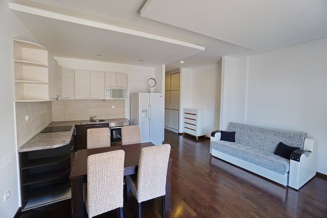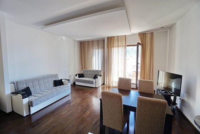 A spacious 59 m2 apartment is located in the heart of Budva in the modern complex “Luzitanos”. There is a courtyard, an underground garage, 24 hour security, video surveillance, central heating and air conditioning. Every apartment is provided with the central hot water system and climate control. The apartment is facing a nice river Grdgevica and is 250 meters from the sea.
