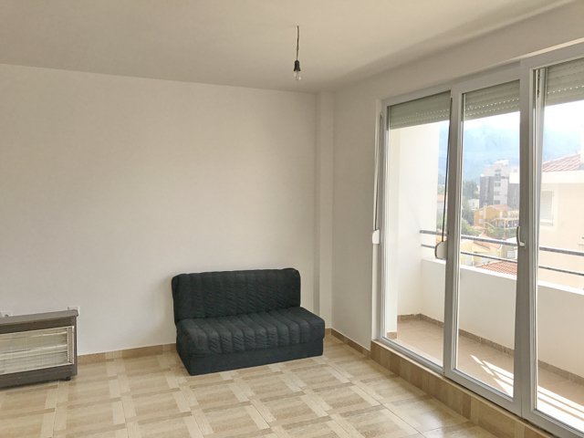 The studio is 32 m2 and consists of a living room combined with a bedroom and a kitchen, a bathroom and an open balcony. There is no sea view, but you can enjoy the view of the city.