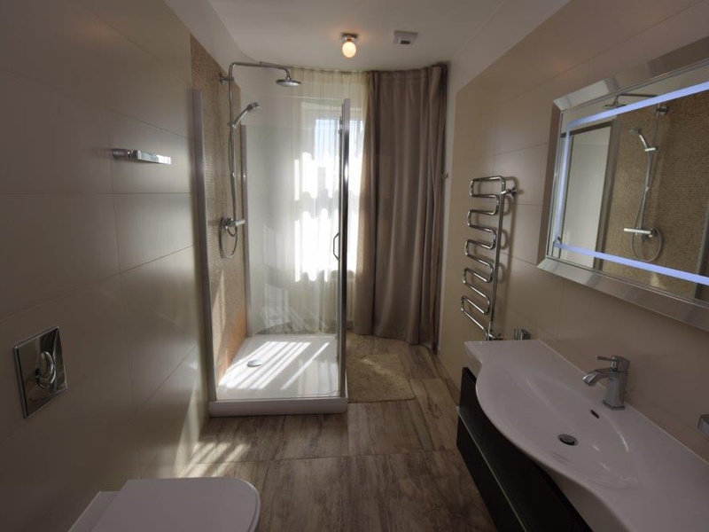Просторная ванная комната с окном: 7,1 m2. Новая, качественная сантехника. В ванной комнате - полы с подогревом.