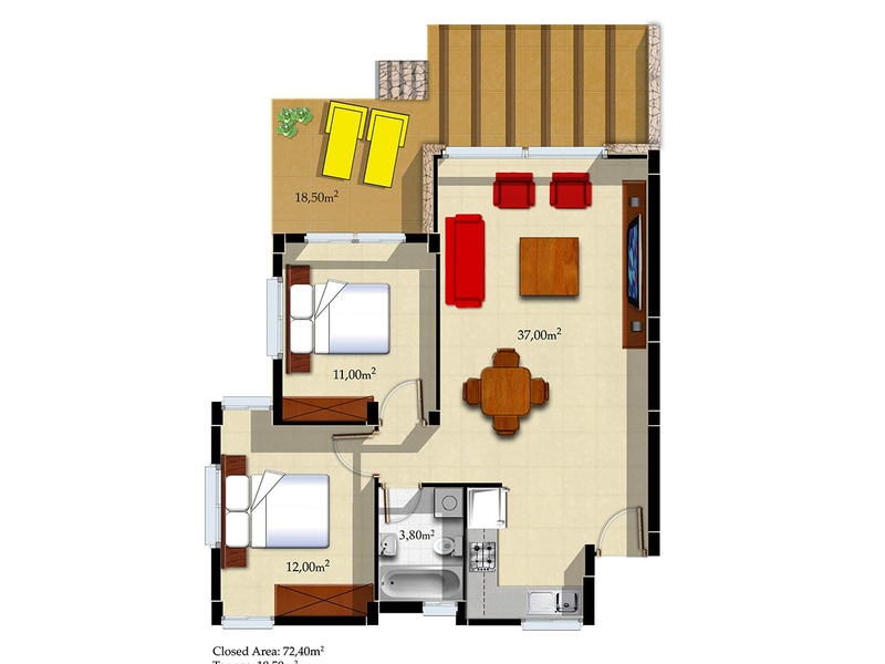72,4 m2 apartment 5 minutes from the sea. Prestigious residential complex located on a hillside in a conservation area, with stunning views of the Mediterranean sea. Apartment is specifically located to provide privacy and open view to nature. All apartments are built to the highest standard using the highest quality materials, taking into account the smallest detail.
