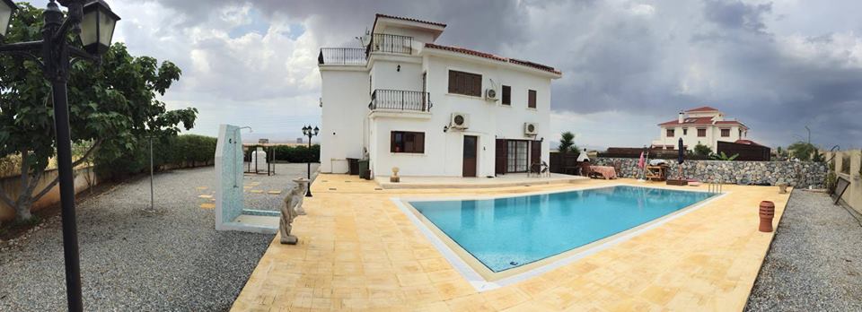 Iskele city of Cyprus, opposite the McKenzi beach in good condition 3+1 luxury dublex detached villa FOR SALE in 220 m2 area with amazing sea view, swimming pool, central heating system and closed car parking.