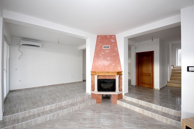 The internal layout includes a huge living room with panoramic windows, which opens our eyes an incredible view of the sea, the city and the forest, also in the living room is a fireplace, living room flows seamlessly into the refectory and kitchen area, thus enclosing a whole harmony of this space.