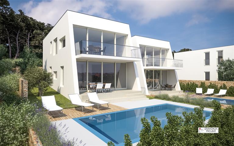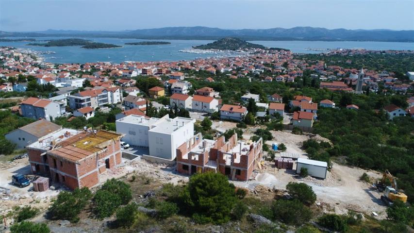 The villa is located on the island of Murter in the village of Murter, on the northern slopes of Raduč, allowing for a view of the Kornati islands aquatorium. The villa has four apartments of 78.94 m2. Each apartment has two bedrooms, a spacious living room with dining area, a bathroom with a toilet and a large terrace. Each apartment has two parking spaces and cellar basements while the apartments on the ground floor have pools of 24 m2 and their own gardens. The price of individual flats ranges from EUR 225,000 to EUR 255,000. The sea is less than 500 m away and the facility is close to all the necessary facilities.