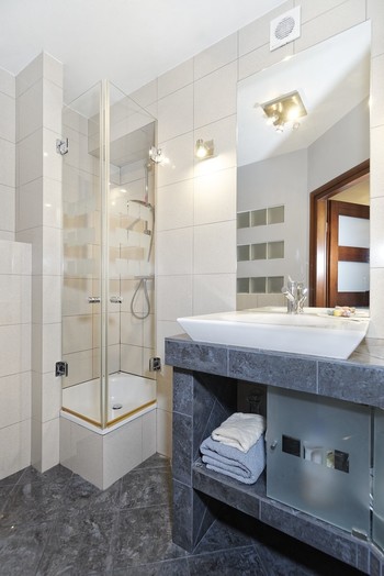 There are also two bedrooms located on the inner patio side. One of them is 13m2 and the other 19m2. It is perfect for owners as they have a separate beautiful bathroom with corner bath and walk-in closet. The second bathroom has an area of 3.8 m2 and is equipped with a shower.