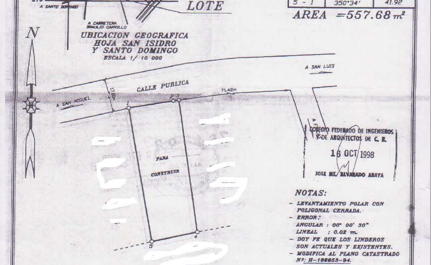 Lot for sale with nice Mountain View, San Miguel de Santo Domingo de Heredia, 557 sq mtrs, 14 mts front.  All services available, near San Miguel center and Route 32.  Quiet area.