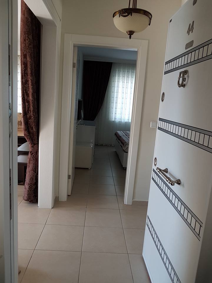 Apartment (secondary sale) in Mahmutlar, in an infrastructure-developed complex in the center. In the apartment: furniture and appliances, kitchen, plumbing, steel door, water heater, hall, combined with the kitchen, videophone, shower, air conditioning. In the complex: pool with slide, sauna, Turkish bath, fitness room, golf course, playground, place for rest and barbecue, indoor pool, generator, video surveillance.