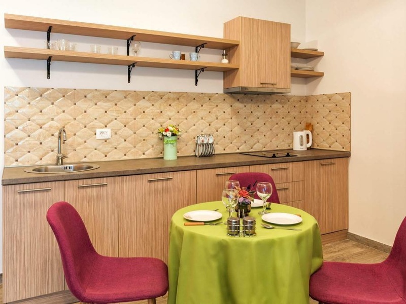 В квартире вы найдете все необходимое для проживания и отдыха: современный телевизор, кондиционер, интернет с wi-fi. В небольшой кухне имеется: варочная панель, холодильник, стиральная машина, кухонная посуда.