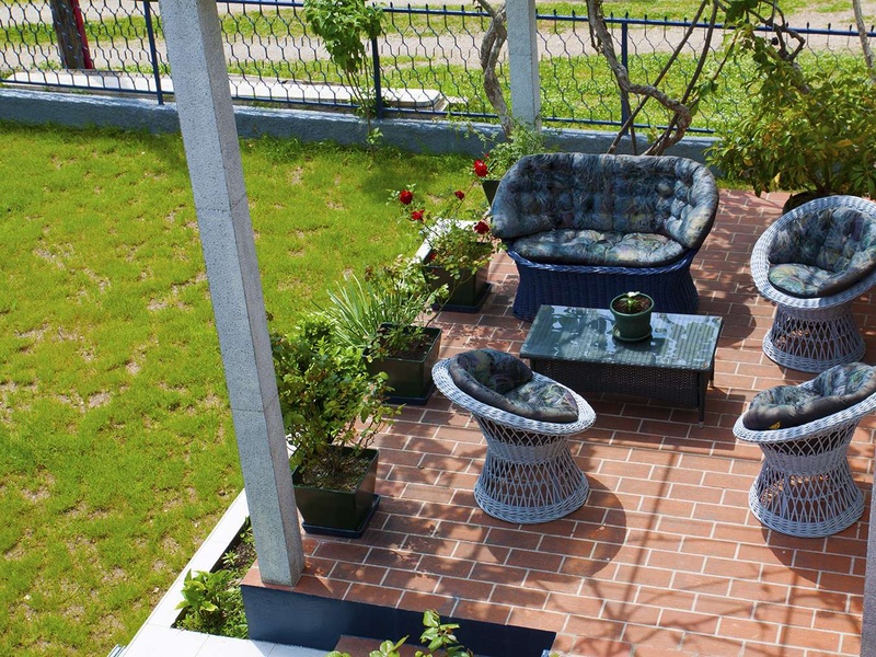 • ухоженный сад с плодоносящими деревьями (инжир, мандарин, киви, груша, лимон, олива), вдоль ограды растет виноград, много цветов —  отдохните в тишине и уюте