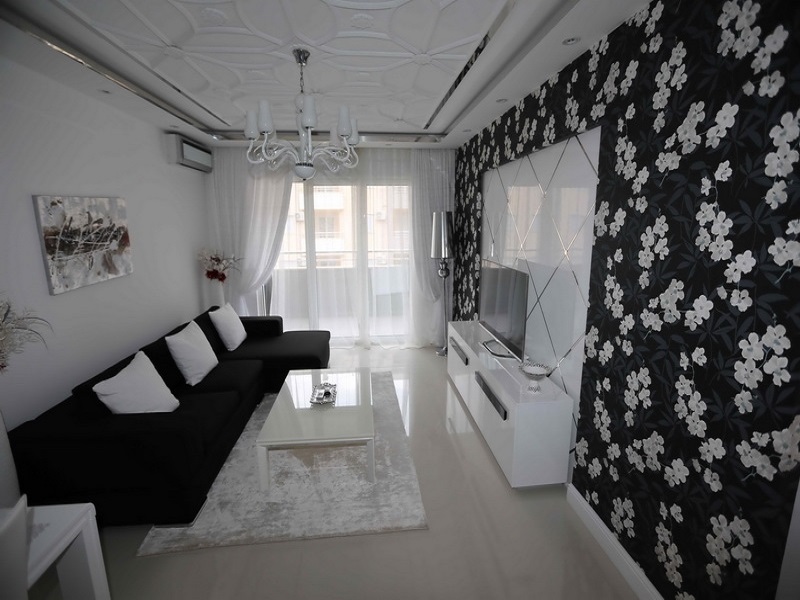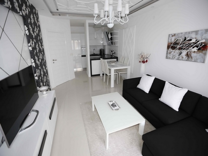 Квартира состоит из просторной гостиной с кухней, спальни, ванной комнаты и террасы площадью 5 м2 с видом на город.