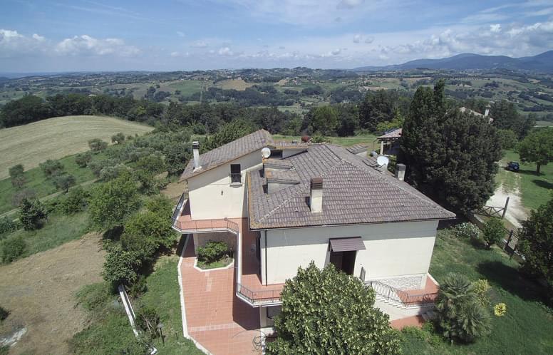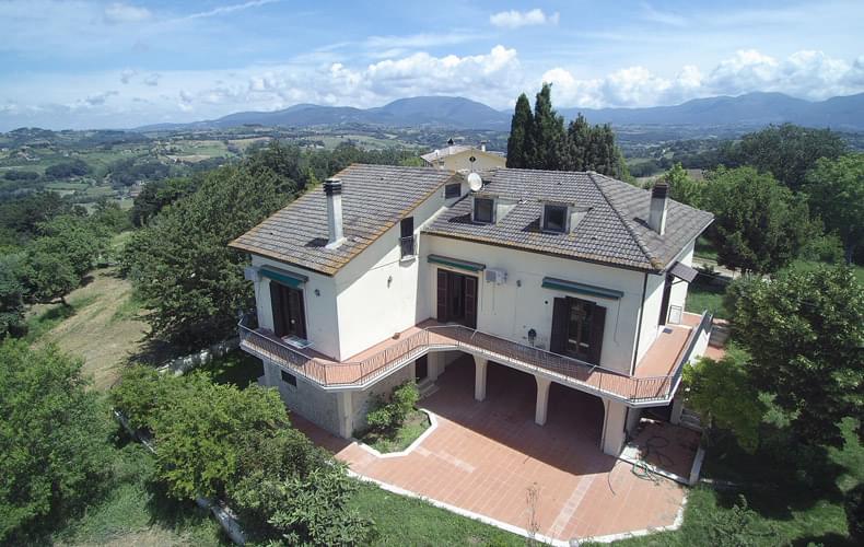 In central Italy, an hour away from Rome and an hour and a half from the international airport of Rome Fiumicino, villa of 180 square meters with land of two hectares (about 20000 square meters). The agricultural landscape is of great environmental naturalistic value. The building is located in a dominant position on the valley of the Tiber river and enjoys an excellent view, also because it is located right in front of an ancient village. It is well connected to the railway station, with motorway toll booths and important roads. The house is surrounded by a fenced garden of 350 square meters, and has three levels. On the mezzanine floor, of 140 square meters, there is a dining room and a very spacious living room, a complete and well-furnished kitchen with access to a large terrace, three bedrooms and two bathrooms. On the ground floor there is a totally independent apartment of 40 sqm with a furnished kitchen, a bathroom and a bedroom. In addition there are a boiler room, two cellars for a total of 45 square meters and a large porch of 50 square meters. On the top floor a large attic of 140 sqm to be recovered, which can offer additional living space in addition to the existing. The house is in general in excellent condition.