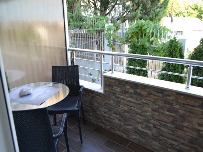 Небольшая уютная квартира расположена на первом высоком этаже жилого здания постройки 2010 года. Дом удалён от дорог и городского шума, расположен в тихом районе Лази с хорошо развитой инфраструктурой. В нескольких минутах ходьбы от дома располагаются кафе, рестораны, магазины.  До моря минут 10 ходьбы.