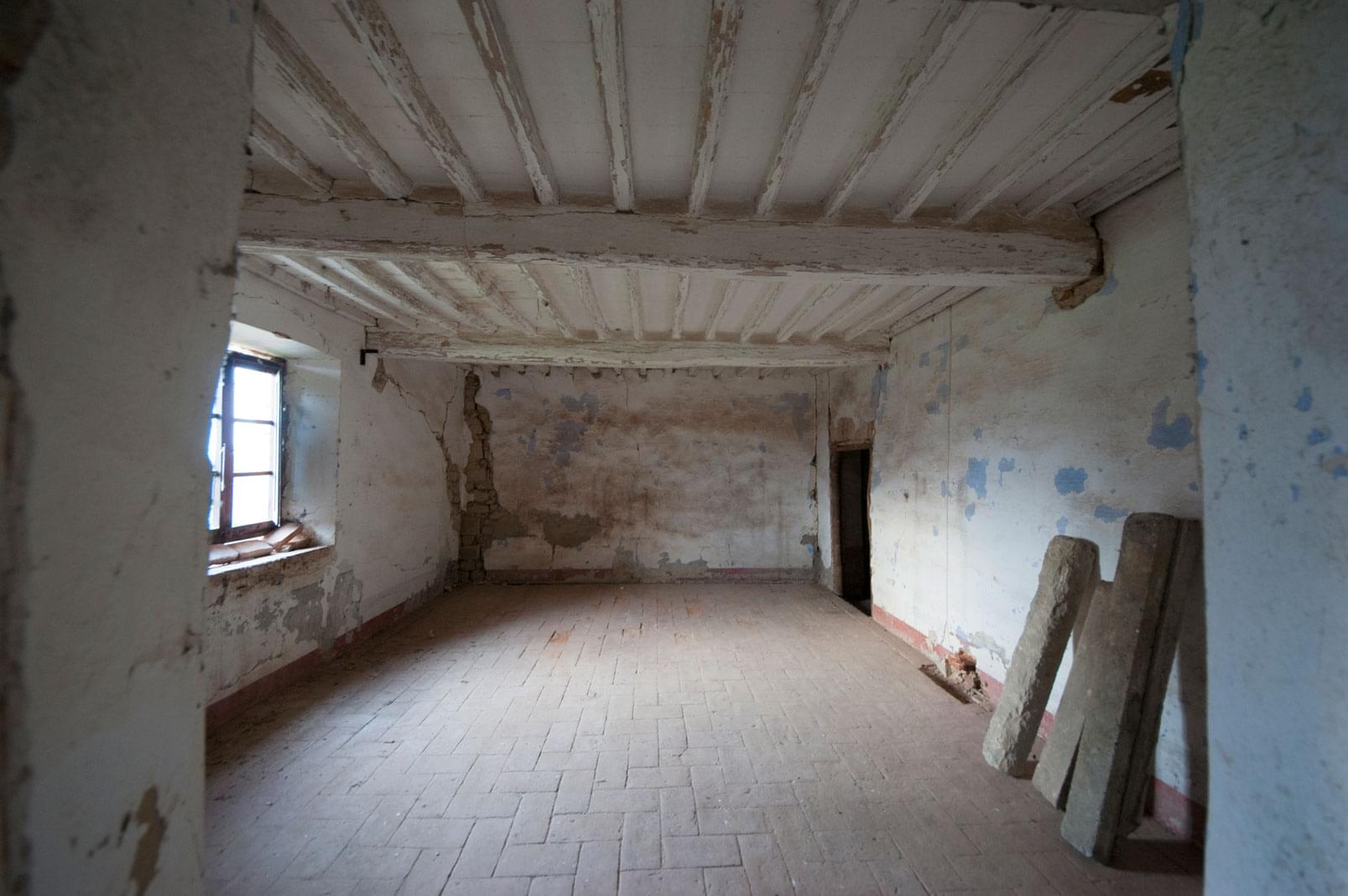 There are 3 stairs to get the first floor from outside because there is a restored part and a part which needs totally restoration.