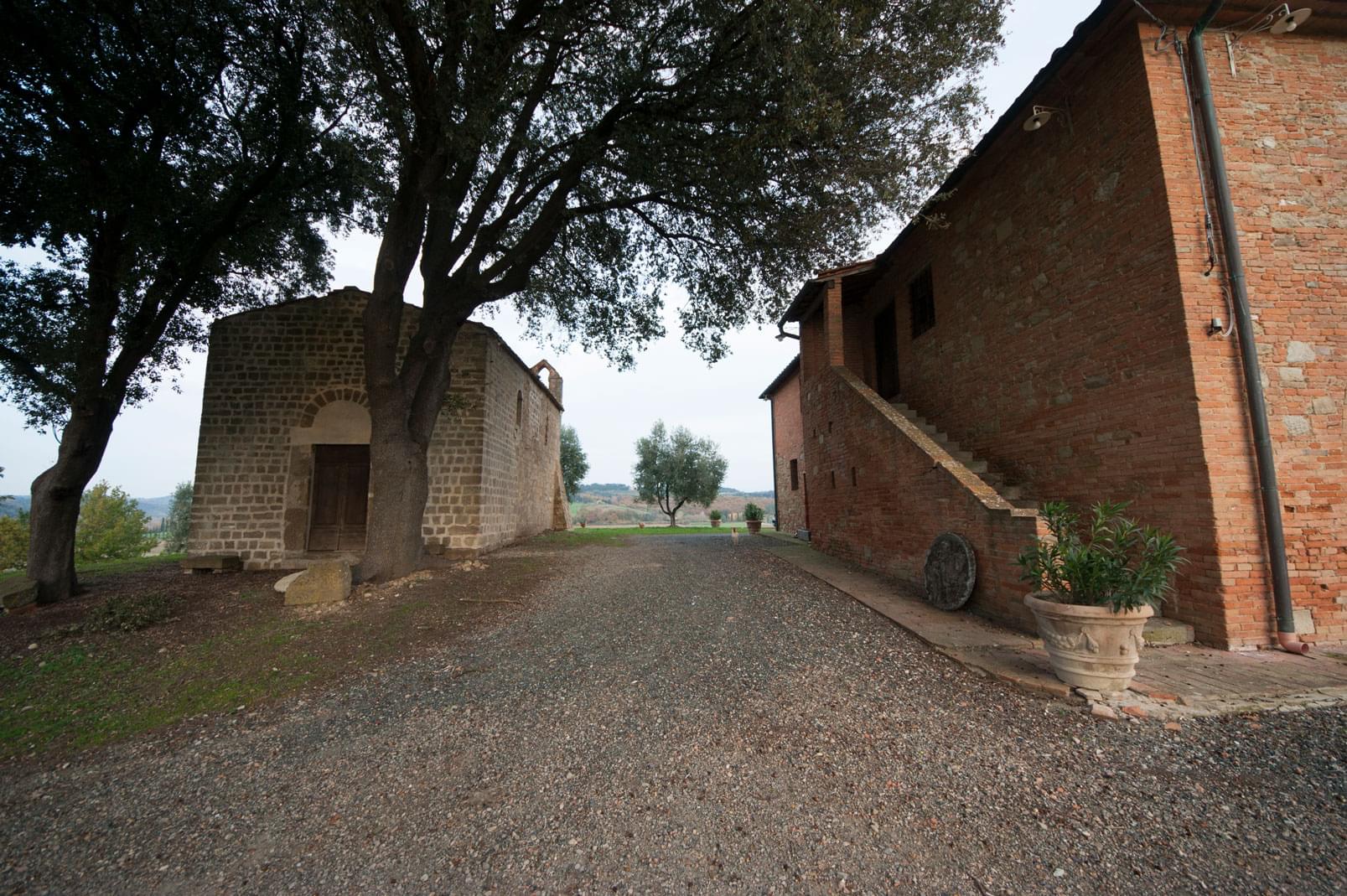 The access to the property is through a very good kept dirt road, a avenue of cypresses, which leads directly in front of the farmhouse, which is right on the top of the hill with a 360° view on the surroundings which are amazingly kept.