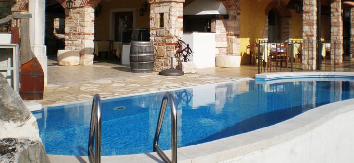 3 salt (Istrian, sea and hunting motifs) with a total of 80 + 30 seats, a terrace beside a swimming pool with 150 seats and a large parking lot (for cars and buses)