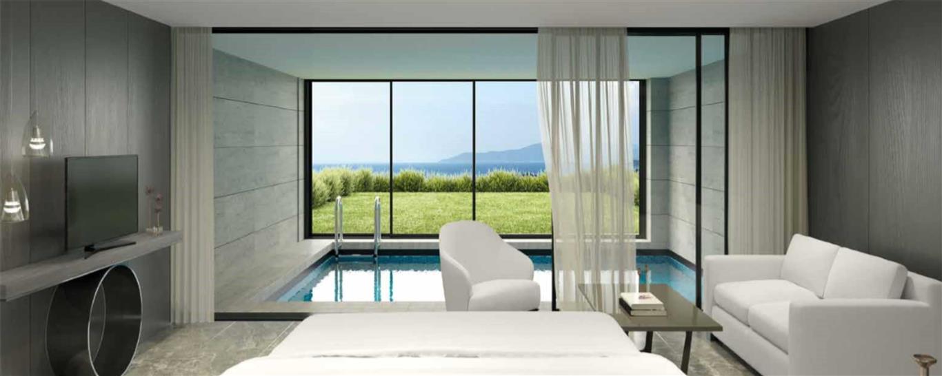 One of the most important mottos of this project: "Safety at home, hotel luxury!". Combining a superb modern design with careful attention to detail, each three-bedroom terrace or a two-level four-bedroom garden residence promises an unrivaled level of luxury, overlooking the spectacular panorama of the Aegean Sea.