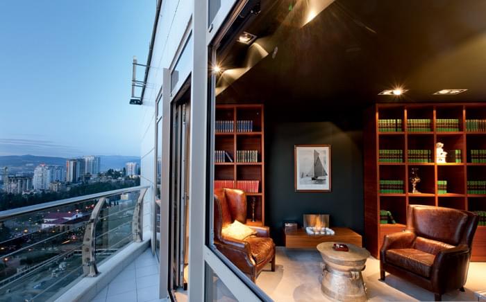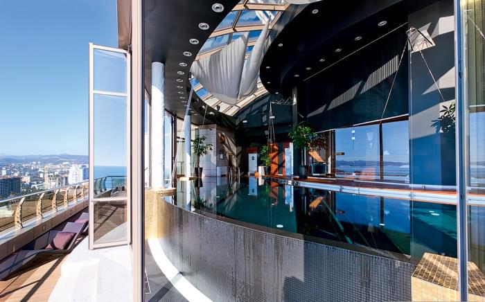 Представляю Вам самый роскошный 3-уровневый Пентхаус в Сочи. С уникальным дизайном в выполненным известной архитектурной мастерской в стиле круизного лайнера, для настоящего Капитана жизни. Меблирован мебелью от известнейших итальянских мастеров. Собственный роскошный закрытый бассейн с панорамным морским видом для времени сиесты. Своя уютная сауна. Три умопомрачительные спальни, каждая со своей ванной комнатой оформленной в уникальном стиле. Роскошный кабинет. Зал для чтения и курения сигар. Массажный кабинет в восточном стиле. Можно выйдя на просторную террасу, как на капитанский мостик навстречу морскому бризу, выпить чашечку кофе, глядя на неповторимый вид морского побережья, акваторию Морского порта Сочи и живописную панораму курорта. Этот трехпалубный круизный пентхаус - надежная и достойная стоянка для настоящего Капитана!