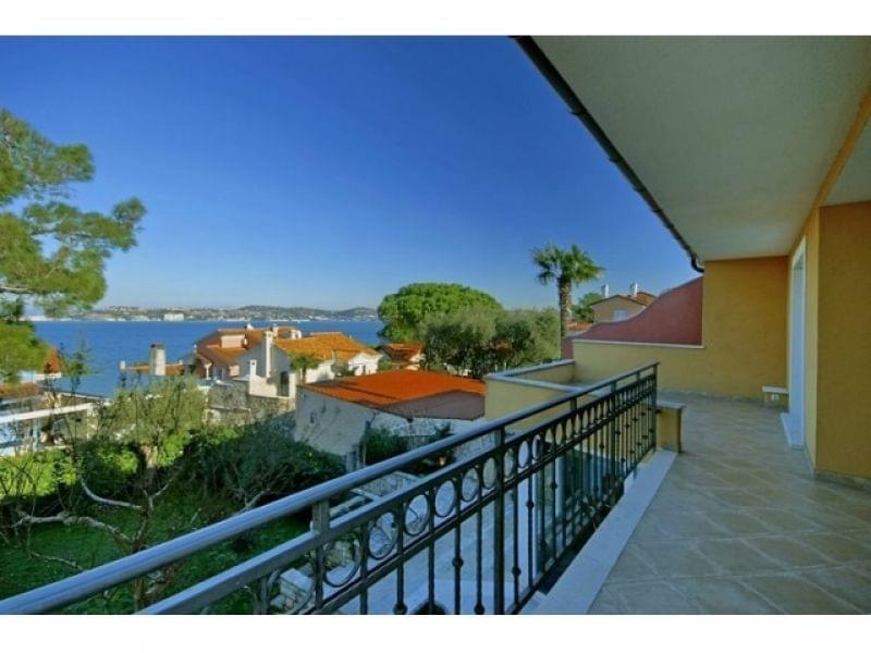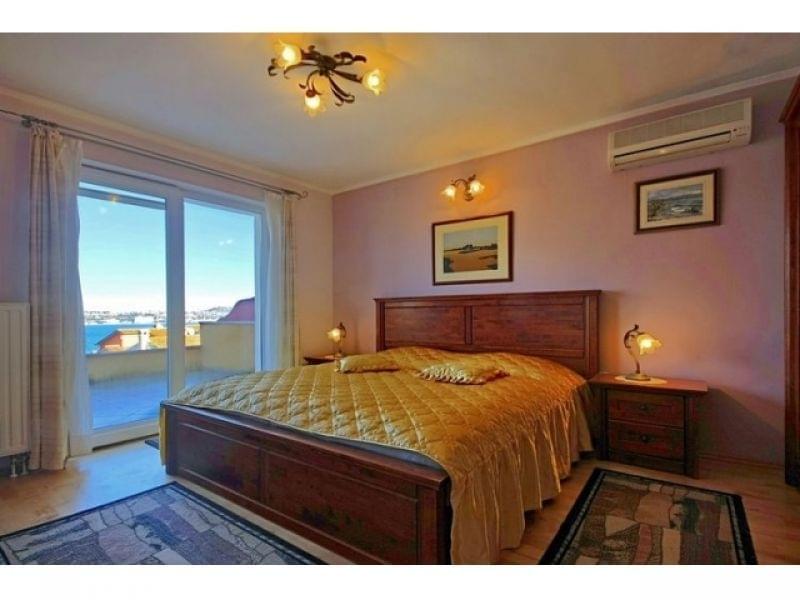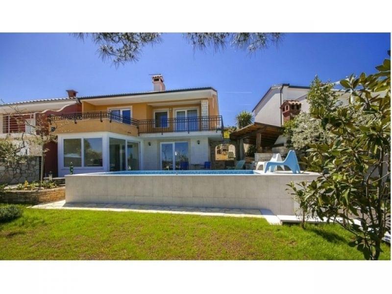 Luxury villas Farkaš sells a beautiful detached villa with swimming pool, 200m away from the well-kept beaches and 300m from the Kempinski golf resort. The house consists of a living room with a closed terrace and a beautiful sea view, then the kitchen, dining room, bathroom and bedroom on the ground floor, and two bedrooms with bathroom and small living room on the floor. On the ground floor there is also a large terrace with a beautiful open sea view. On the front of the house there is a landscaped garden and swimming pool. Outdoor barbecue and summer kitchen of about 16 m2 on the side of the house, and another barbecue behind the villa. The house is conceived so that it can be used as two separate apartments with separate entrances and landscaped gardens. Heating: on the air or central on the oil.