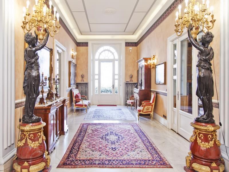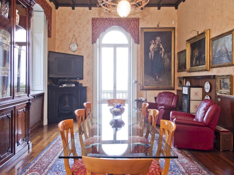 Historical lake front villa for sale in Stresa with a beautiful view over the Borromeo Islands. The main villa that has a surface of 800 sqm and it’s disposed on 4 levels, is surrounded by a park of 5.000 sqm, with the dependence of 102 sqm, storage room with mezzanine, garages, dock and private beach.The villa consists of an exclusive large entrance hall on the raised ground floor, embellished by the majestic helicoidal marble staircase which leads to the upper floor. From the entrance, to the left, there is a big living area with fireplace and the study room; on the right the dining room, eat-in kitchen and a guest bathroom. On the first floor the night area, composed by a master bedroom with en-suite bathroom and walk-in closet, other two double bedrooms, bathroom with tub and a study room. From the stairs in the study you get to the last level, which is an attic floor. The attic is composed by a relax area/study, four bedrooms and a bathroom. In the basement there are the tavern, gym, laundry and wine cellar. In the beautiful park with century trees surrounding the villa, we find the dependence consisting of a living room, kitchen, two bedrooms and bathrooms. Next to it another little house with living room, kitchen, one bedroom and one bathroom. Moreover, above one of the two double garages, there is another hobby room with big windows facing the lake. This magnificent property is completed by a dock (its license has been recently renewed) with a shower, and a private beach.