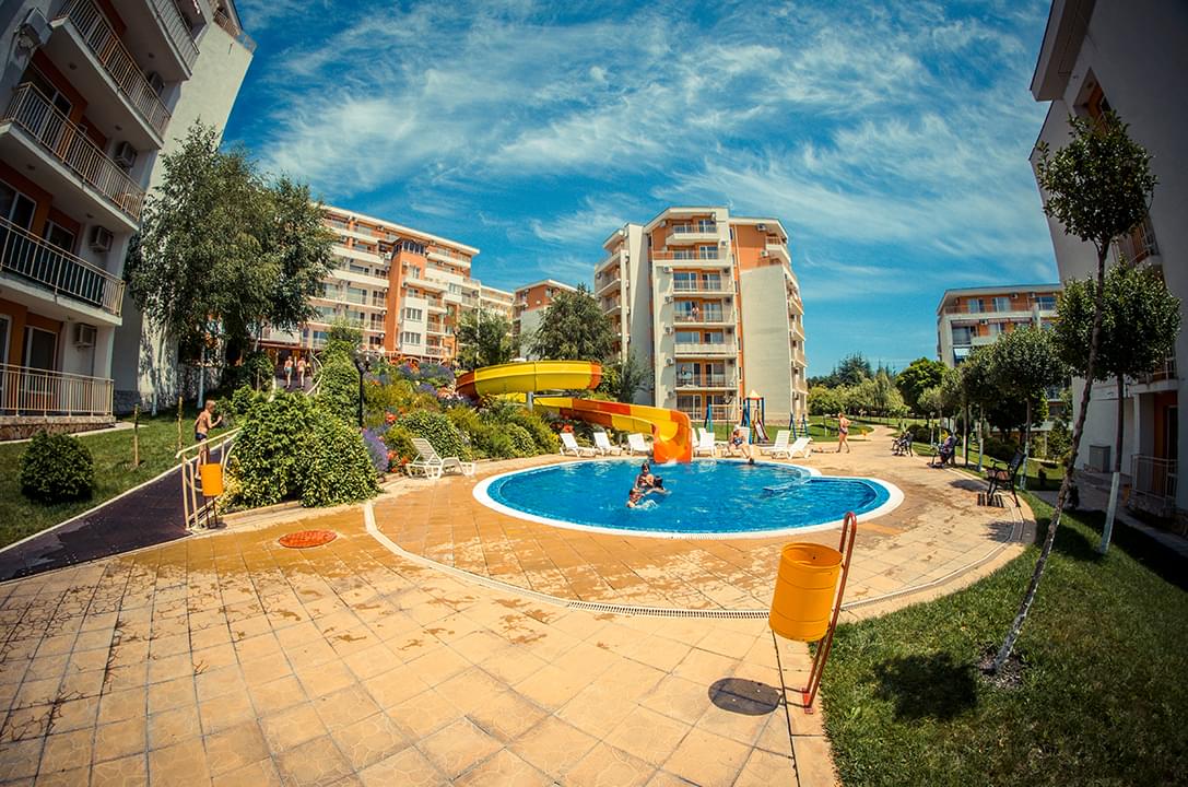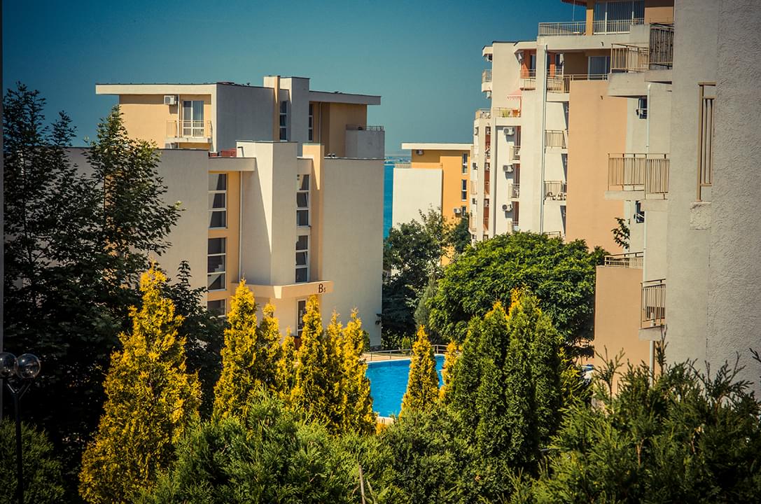 Комплекс находится между Елените и г. Святой Влас, вторая береговая линия, 150 метров до моря, чудесные виды из окон всех апартаментов.