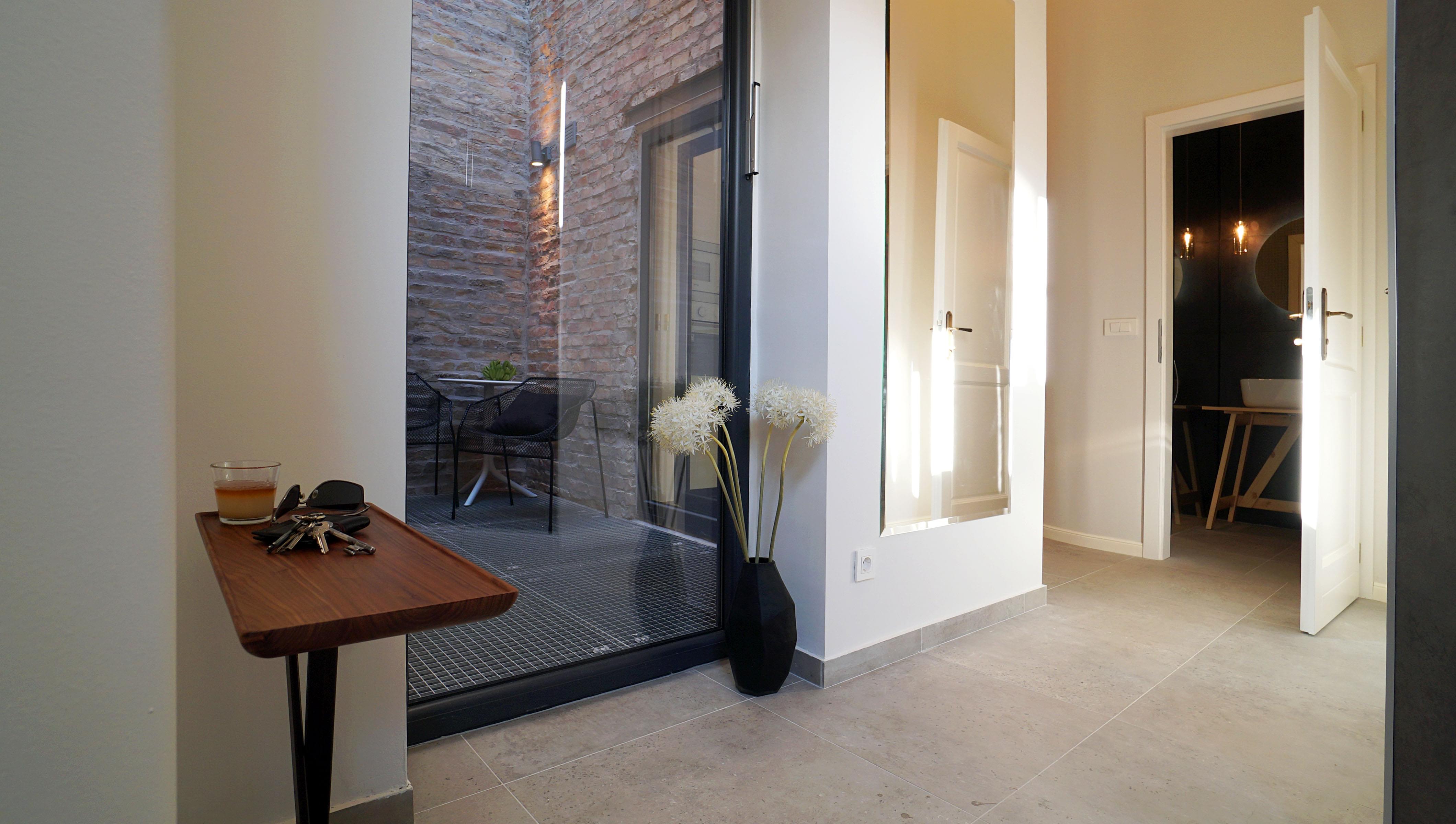 A great investment or an ideal home in the heart of Budapest in a quiet pedestrian street. The 40 sqm apartment was completely renewed in very high quality according to the plans of a professional interior designer mixing classic and modern elements in style. The street facing property is on the 1st floor of a lovely classical style building. It consists of a hall, with a small wardrobe, a bathroom, a separate toilet, a kitchen, and a living room with a sleeping gallery. The floor of the living room is genuine oak. The apartment is fully furnished and equipped including a built-in kitchen, a washer-dryer, two LED television sets and a sauna. All the inner walls and the whole piping and electricity are new as well. The heating system consists of a two circle electric floor heating and a heat storage electric stove. And at last but not least there is a 6 sqm private patio that makes the apartment even more unique. The common cost is 12.500.- HUF (40.- EUR) that contains unlimited water consumption. There is no gas in the apartment so the utility cost is exceptionally low. The public transportation connections are just great 4-6 tramline is in a couple of corners away and metro line 2 is also in a comfortable walking distance.