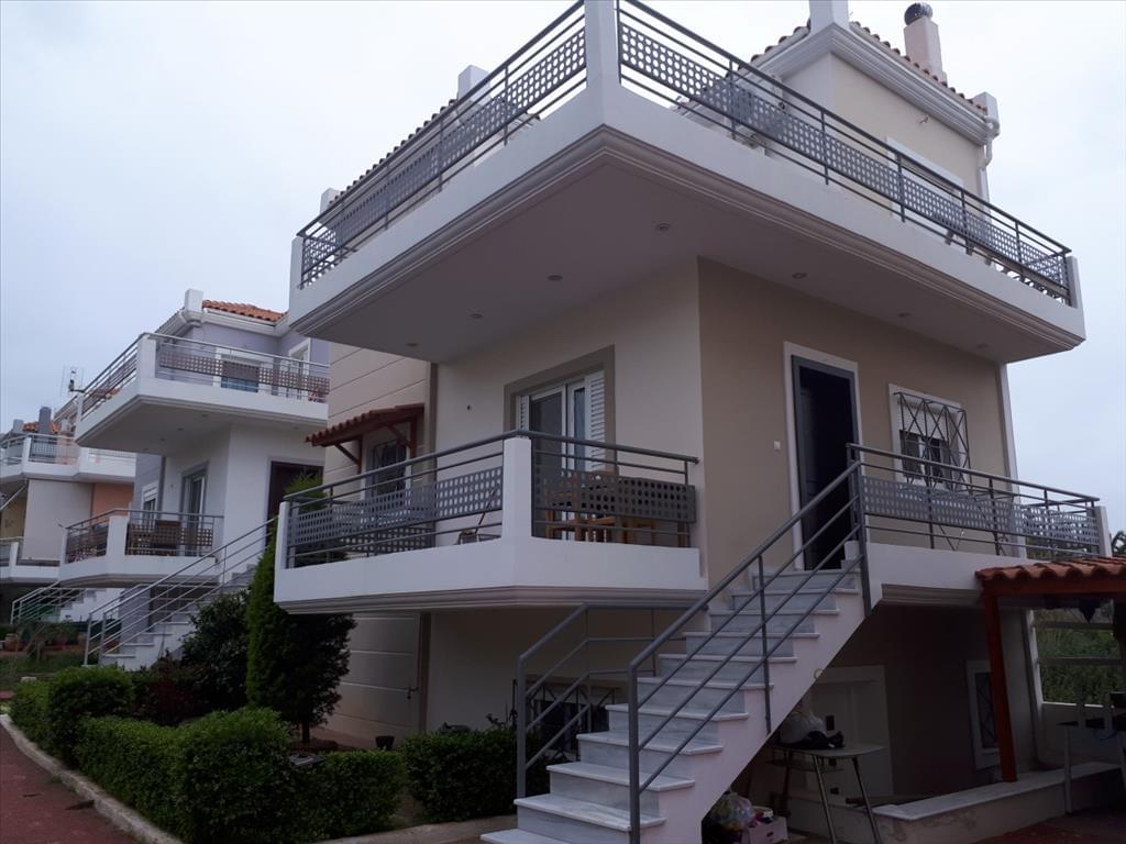 For sale is a townhouse of 130 square meters in Loutraki. Taynhaus is located on 3 levels. The basement consists of 2 bedrooms, one bathroom. The first floor consists of a living room with kitchen, one kitchen, one bathroom. The second floor consists of 2 bedrooms, one shower room. Has a view to the sea, to the mountains, also there are armored entrance doors, solar panels for heating water, fireplace, air conditioning, parking space, garden, lawn, heating, utility room.