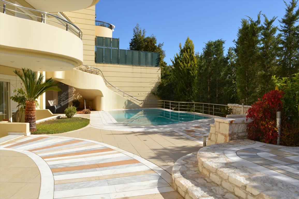 For sale 4-storey villa with an area of 630 square meters in Athens. The basement consists of one bathroom, one storage room. The first floor consists of one bedroom, living room with kitchen, one kitchen, 2 shower rooms, one pantry. The second floor consists of 3 bedrooms, 2 bathrooms, one shower room. The third floor consists of a living room, one bathroom. Has a view to the sea, to the mountains, to the city, also there are armored entrance doors, solar panels for heating water, fireplace, air conditioning, awnings, pool, garden, lawn, elevator, garage, heating, alarm.