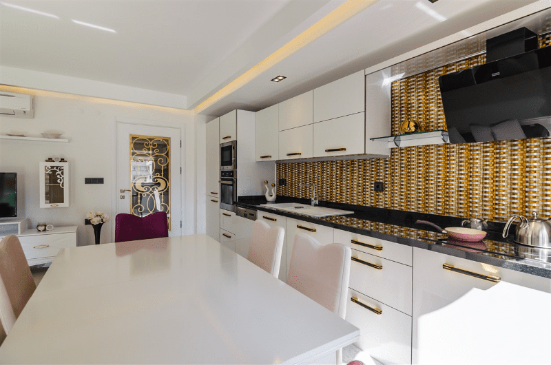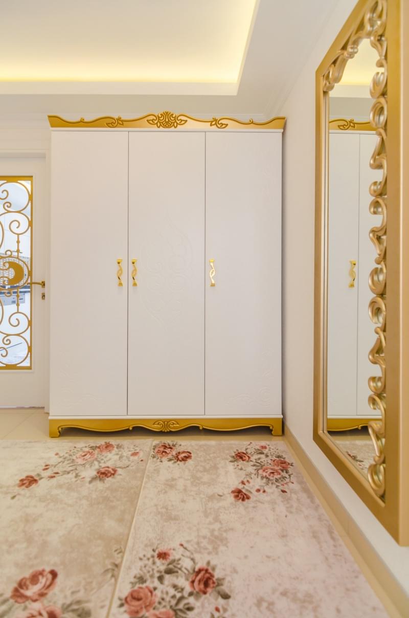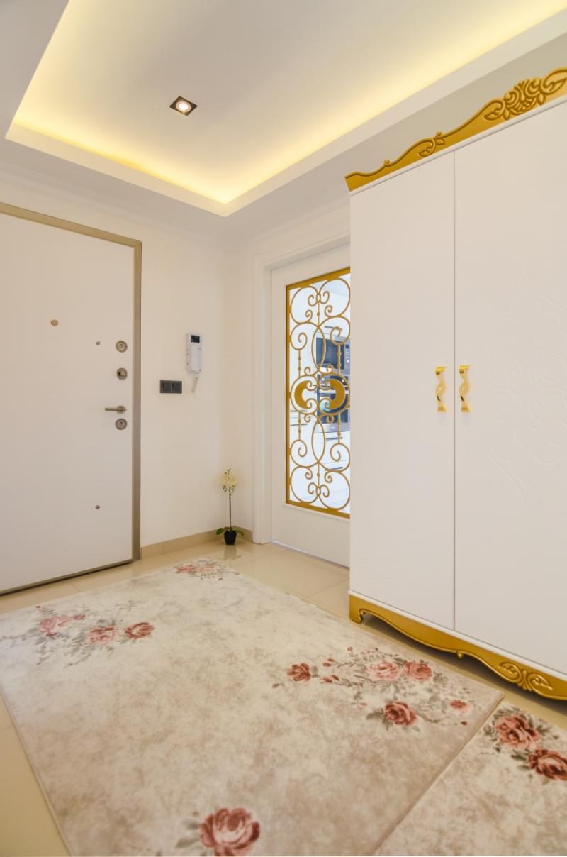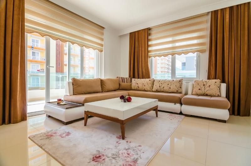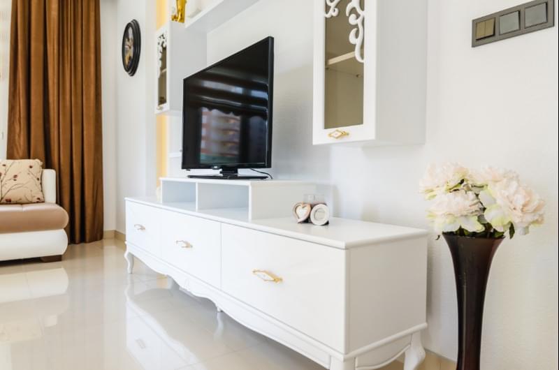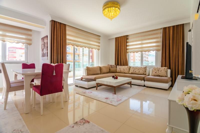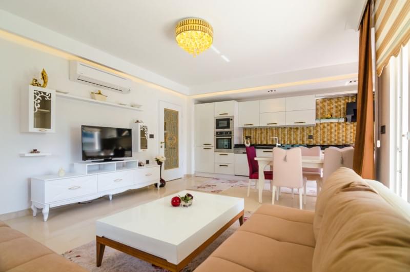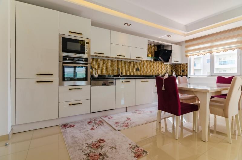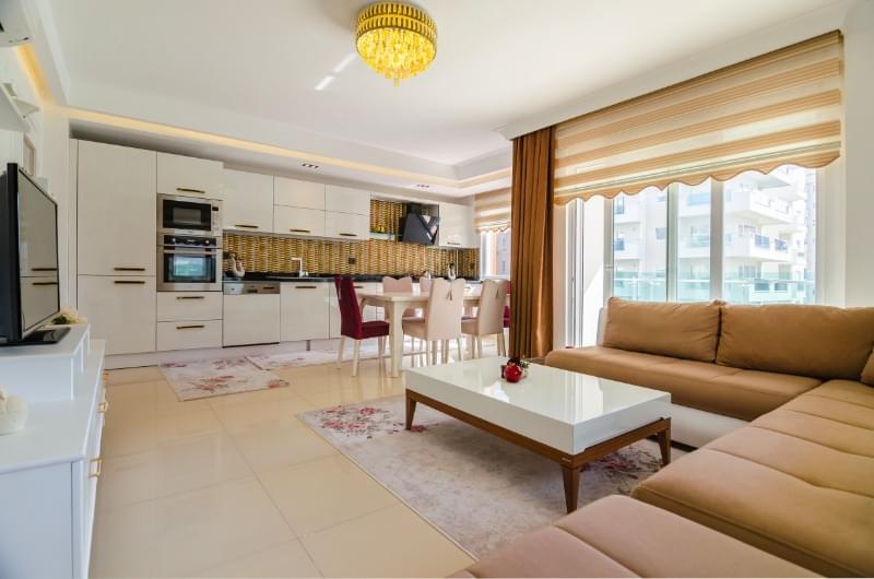 The apartment has everything you need for living, down to small things such as slippers and towels. All tables in the living room and kitchen are folding, the technique is made by the Swiss company Franke, textiles and furniture in all rooms of the Turkish company Bellona.