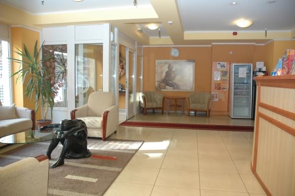The rooms are equipped with TV, refrigerator, telephone, in-floor heating. Thanks to the inner atrium, the building has natural lighting throughout. There is a restaurant on the groundfloor at the atrium which is designated to serve 100 guests, currently serving buffet style brunch only.