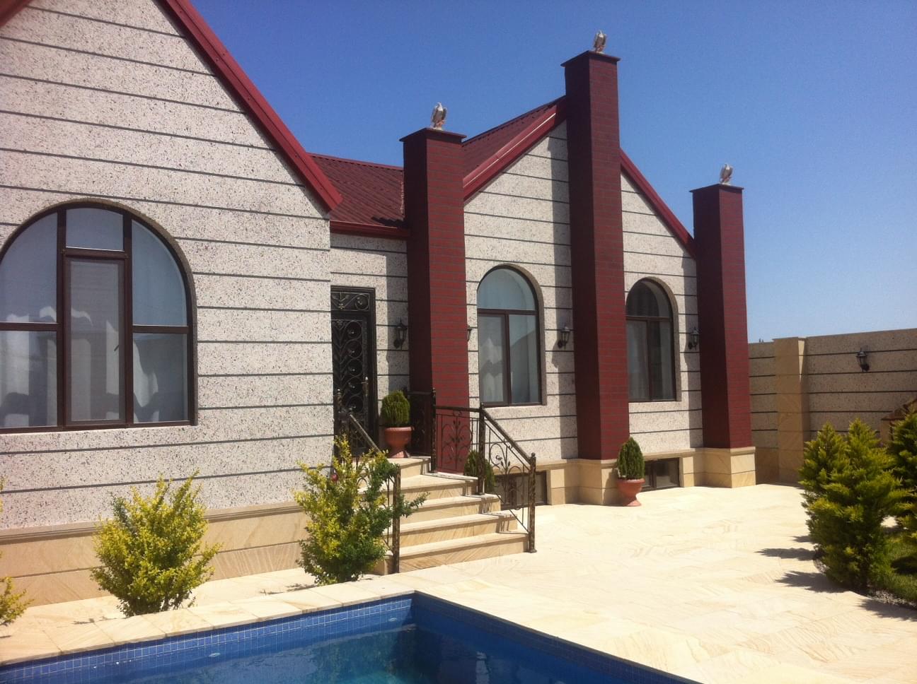 Продается ново построенный дом на побережье Каспийского моря в развитой инфраструктуре в элитном курортном районе г Баку пос Мардаканы. Расстояние до города 25 мин по скоростной широкой магистрали. Расстояние до аэропорта 10 мин.До Аквапарков и пляжей 5-7 мин. Рядом Маркеты, Кинотеатр Торговый центр рестораны. Дом построен на 6 сотках земли и обнесен высоким каменным забором 3,4м. Общая площадь дома 160 квм. В доме 3 спальные комнаты по 18 квм и зал 50 квм, кухня 18 квм все обставлено кухонной мебелью и бытовой техникой. В спальной и столовой комнатах установлены сплит кондиционеры. все комнаты просторные и светлые. В доме 2 сан/ узла (1 общий и 1 в хозяйской спальне). Весь дом обставлен мебелью. Во дворе бассейн с очистительной системой 8х4, беседка 25квм, мангальная и гараж на 1 машину и 1 сан/узел во дворе. Дом строился из качественного материала толщина стен 40 см. Весь дом уложен каменной плиткой. Документы все в порядке и прошли регистрацию в государственных органах. Также имеются дома на 10-12 сотках земли разных дизайн.