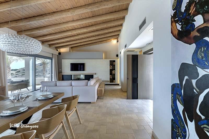 This lovely spacious luxury villa is set in a tranquil bay only 150 meters from a quiet beach with crystal clear water. Available also a beautiful marina for small boats docking. The Luxury villa is standing on a plot of 2.780, 58sqm located directly on the sea front. Villa dionysos is an example of sophisticated and elegant design.