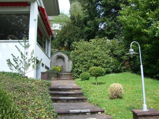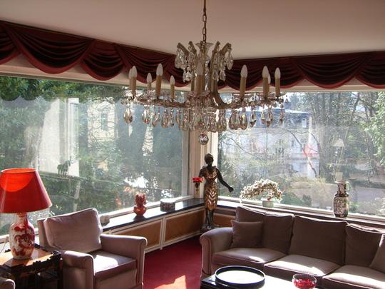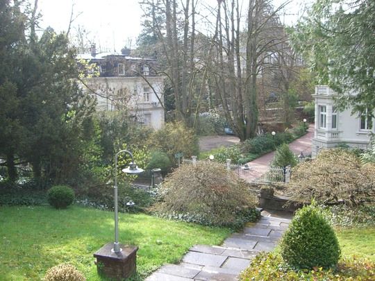 Все четыре этажа пригодны для использования! Подвальный этаж: прихожая, комната, бар, ванная комната с душевой кабиной и подключением для стиральной машины, газовое центральное отопление Vliessmann Vitocell 300, кладовые. Первый этаж: прихожая, кухня, гостевой туалет, 2 гостиные с эркером, столовая. Второй этаж: 2 гостиные, 2 спальни, ванная комната с ванной, раковиной и туалетом, две стороны дома обрамляет терраса. Третий этаж: мансарда с жилой/спальной комнатой (студия), ванная комната с ванной, раковиной и туалетом, маленькая внутренняя терраса. Студией можно пользоваться отдельно от всего дома, если пристроить лестницу с внешней стороны. Столовая и гостиная с эркером оснащены паркетом, в остальных комнатах ковровое покрытие. Дом имеет гараж, а также 2 парковочных места для автомобилей с навесом.