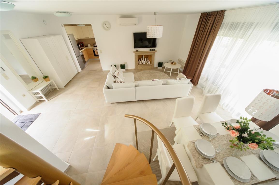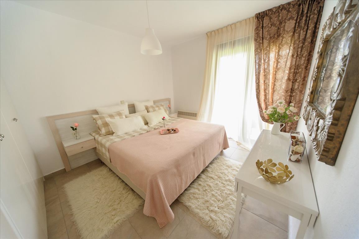 For sale is a 2-storey villa with an area of 110 square meters on the peninsula of Kassandra, Halkidiki region. The first floor consists of a living room, one kitchen, one shower room, one storage room. The second floor consists of 3 bedrooms, one shower room. Has a magnificent view of the sea, the mountains, the city, the forest, also has armored entrance doors, fireplace, parking space, garden, lawn, barbecue, heating, alarm, utility room.