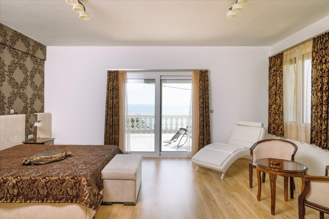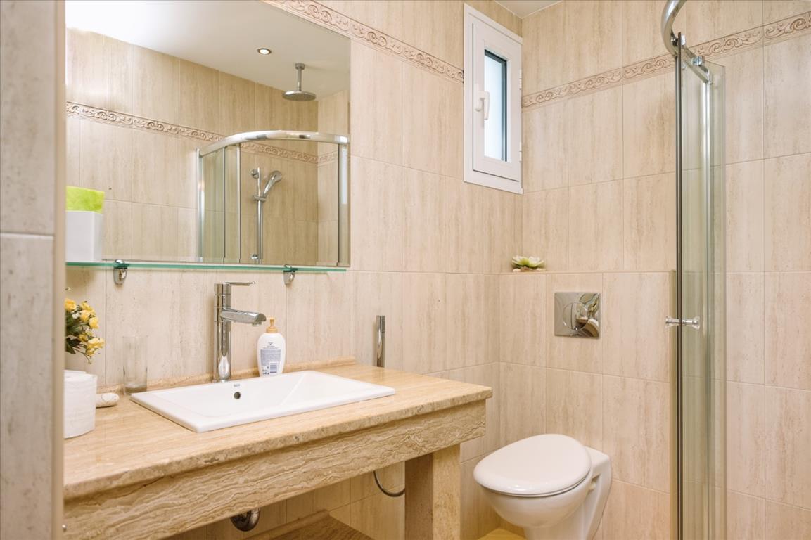 For sale is a 3-storey villa with an area of 450 sq. M on the peninsula of Sithonia, Halkidiki region. The basement consists of one storage room. The first floor consists of one bedroom, living room with kitchen, one bathroom, one shower room, 2 storage rooms. The second floor consists of 4 bedrooms, 2 bathrooms, one shower room, 2 bathrooms. The villa has a corner location. Has a magnificent view of the sea, also has furniture, armored entrance doors, solar panels for heating water, fireplace, air conditioning, garage, heating, alarm, utility room.