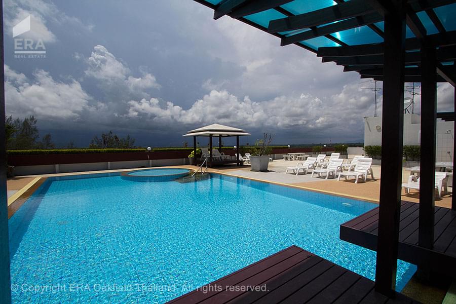 The living space is divided into living room, kitchen, balcony, bathroom and two bedrooms. The kitchen is equipped with a dishwasher and the bathroom is prepared for washing machine. From the living room you reach the nice balcony where you can gaze across the folklore, down to wonderful Mae Phim Beach as well as the Grand Beach resorts nice pool area.