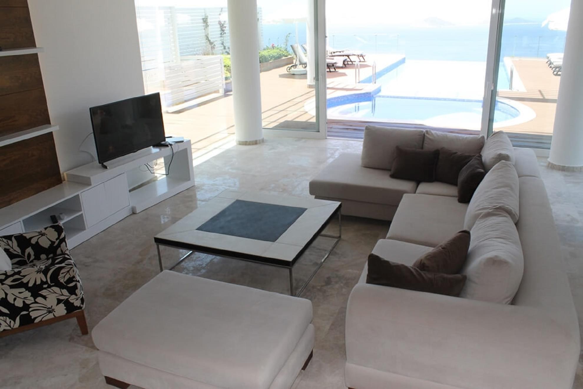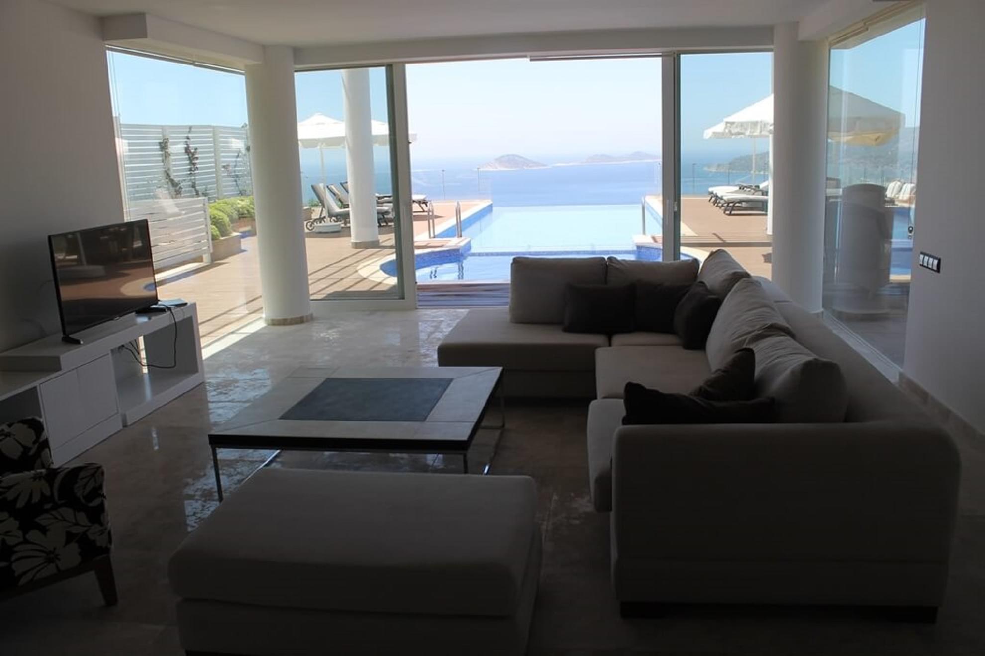 Built in 2015, this villa is one of three replica designs, each with their own touch of personality and individuality above Kalamar area of Kalkan.