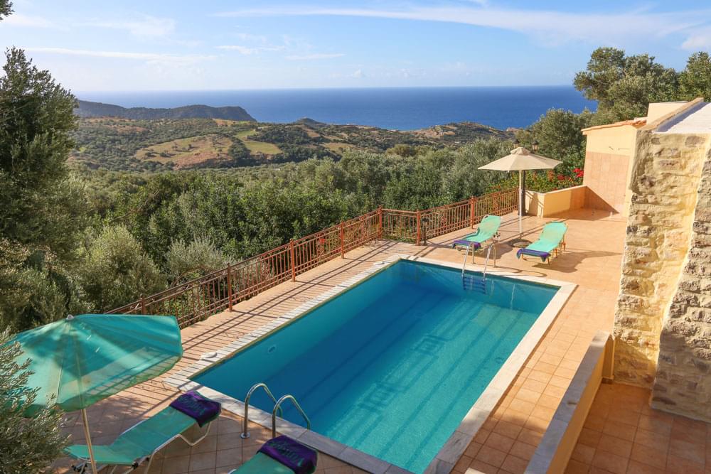 Sale of two villas with a total area of 300 square meters in the south of Crete. Each villa has an area of 150 sq.m. It has a spacious living room with a dining area, a fully equipped kitchen, 2 master bedrooms with their own bathrooms. Each villa has its own private pool and garden. And also, on the territory there is a separate guest house consisting of one single space, there is a kitchen, a fireplace and a bathroom. The villas have spacious rooms, panoramic sea views, solar water heating panels, furniture and internet.