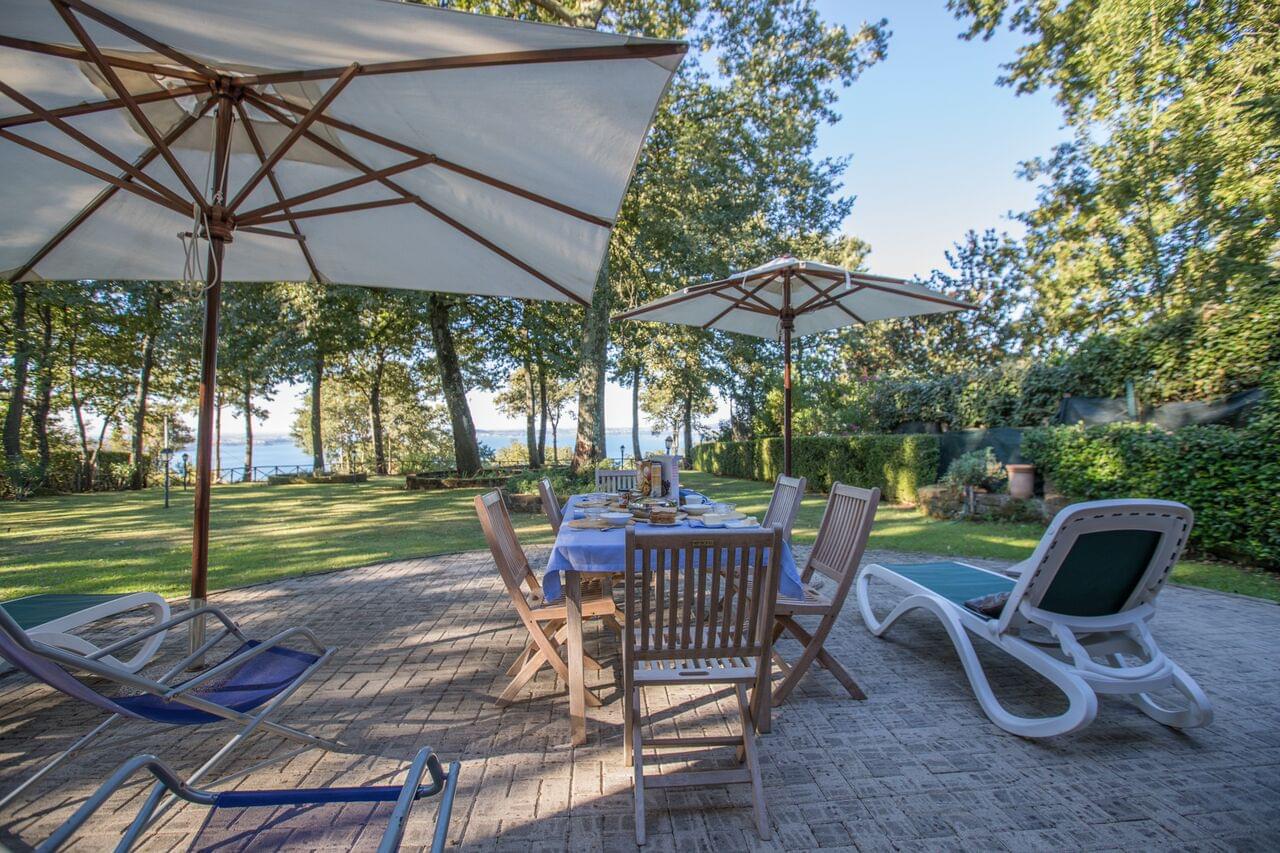 Outstanding position with stunning views over Lake Bracciano to Anguillara, Bracciano (including castle) and beyond to the sea.